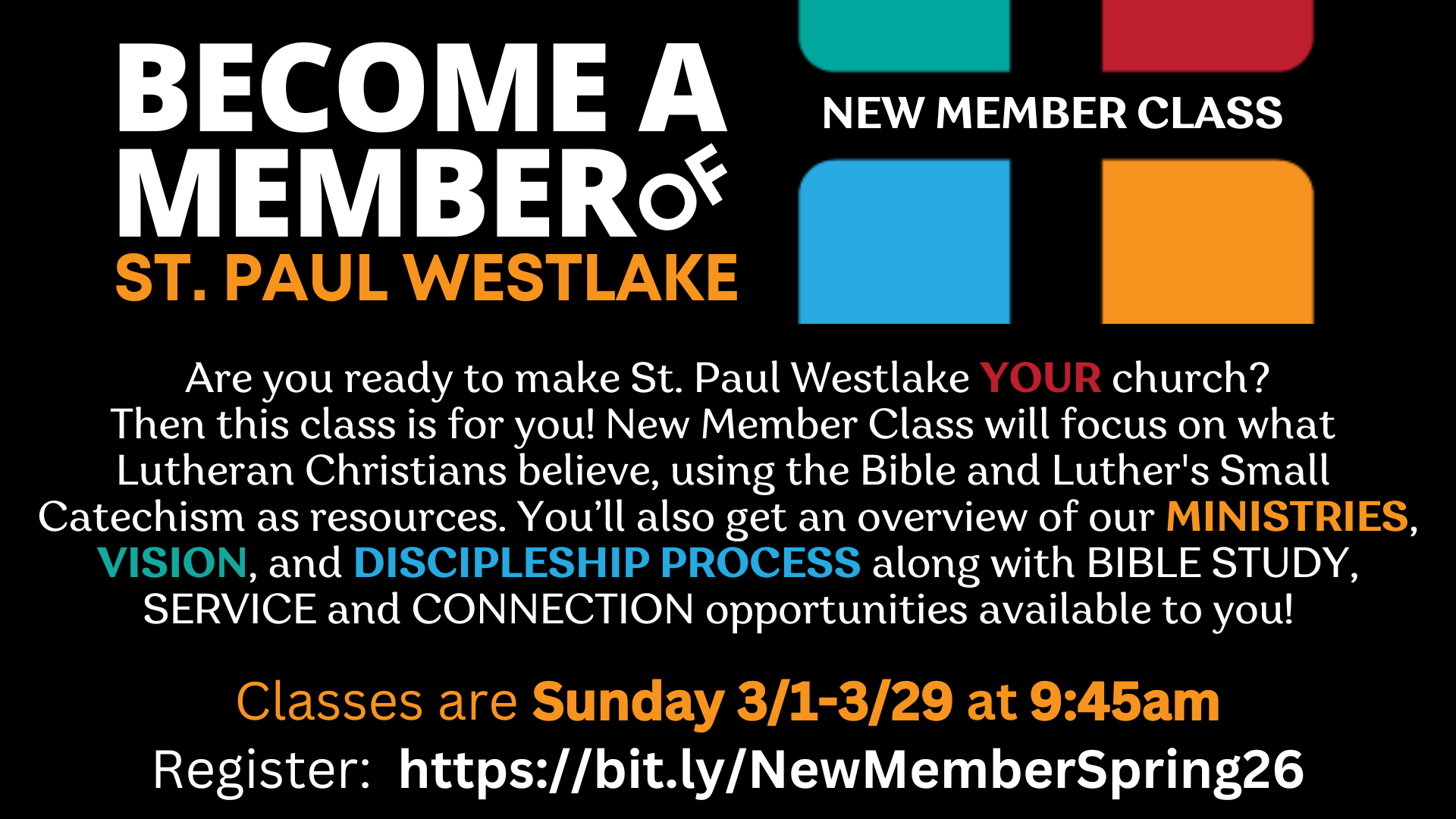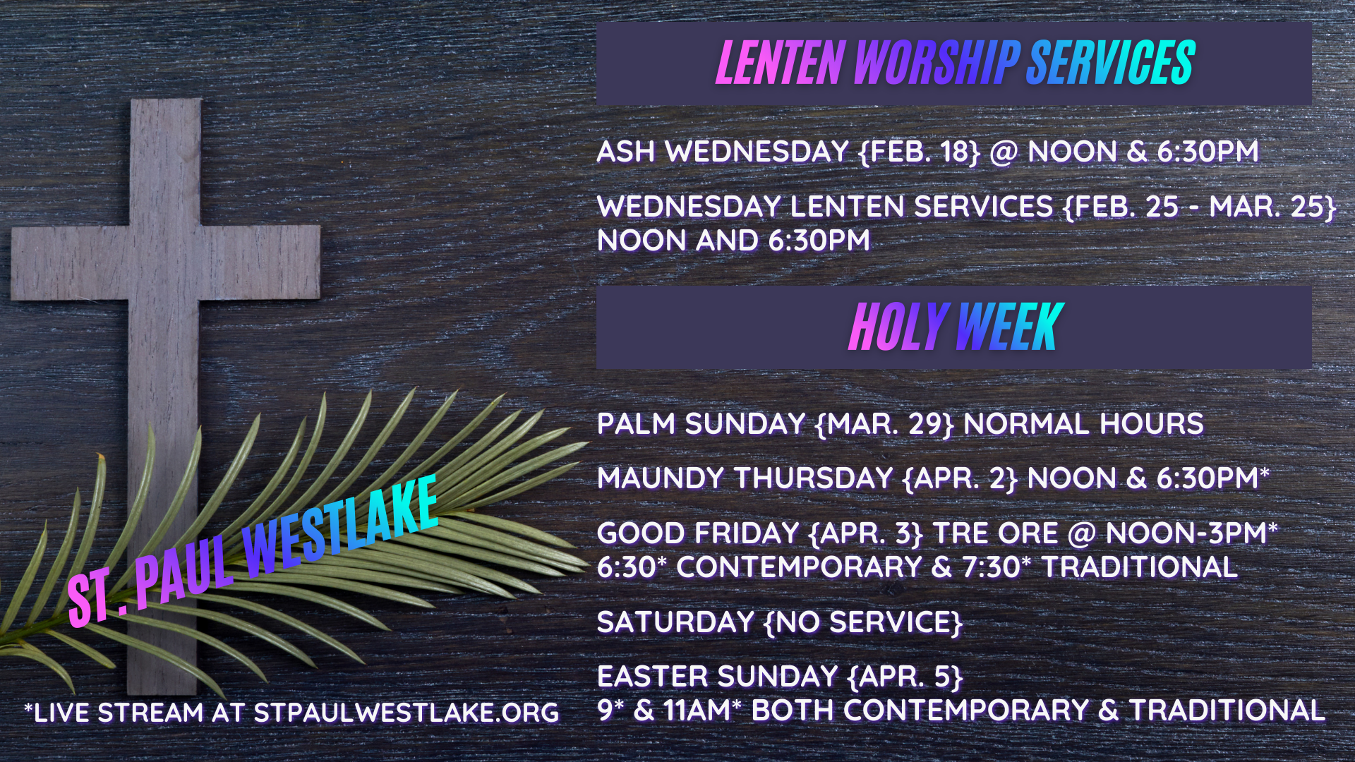 Welcome to ST. PAUL WESTLAKE! Check out our EVENTS tab for special worship services and fellowship opportunities like these…